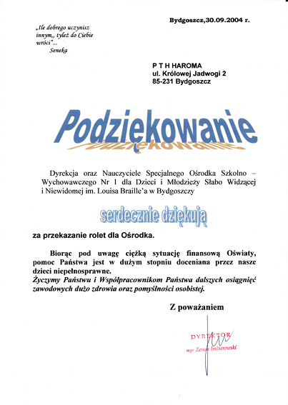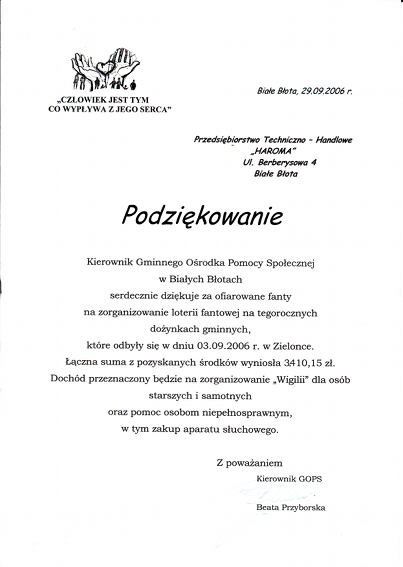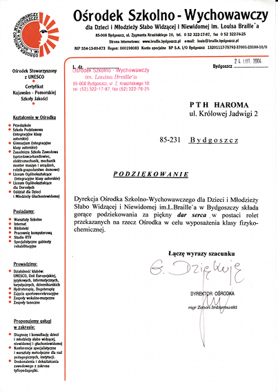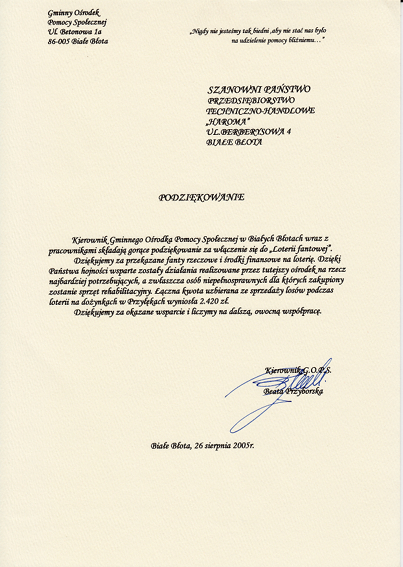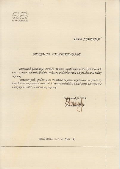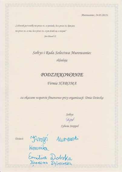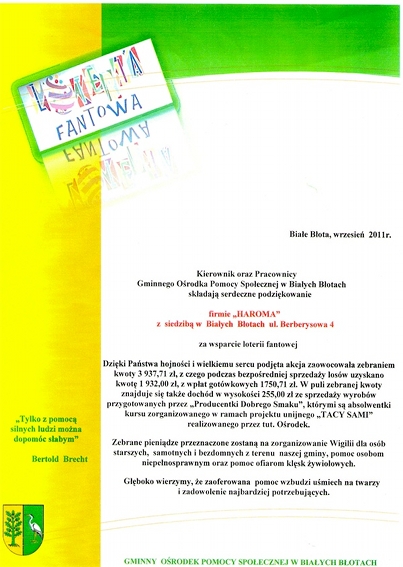 W swojej długoletniej działalności firma aktywnie wspiera lokalne instytucje.