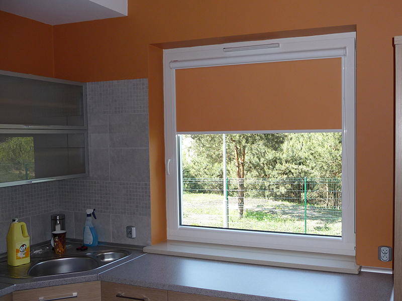 Kasety i prowadnice w kolorach: białym, brązowym, złoty dąb, orzech, mahoń, jasny dąb,ciemny dąb lub pomalowane na dowolny kolor RAL.