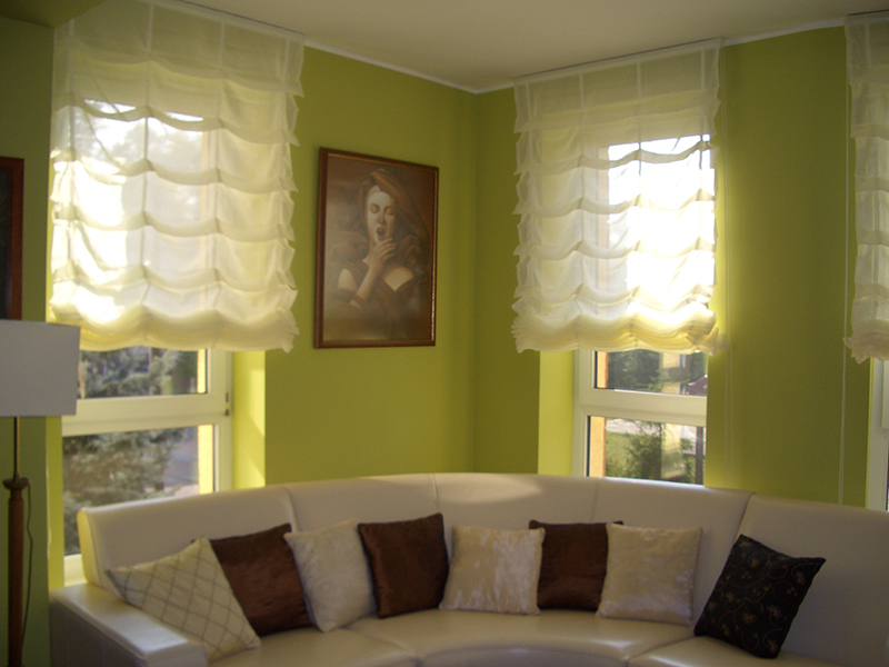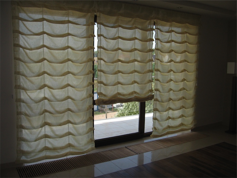Zasłony rzymskie można wykonać z różnego typu tkanin: cienkich - spełniają wówczas funkcję firany lub grubszych- zasłaniających.
